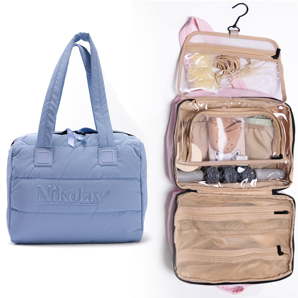 Keep your pointe shoes clean, dry, and organized with the Nikolay BC003BAI Pointe Shoe Marvel Organization Bag. Designed with two mesh pockets, this bag is perfect for storing your pointe shoes after practice, allowing them to air out and dry properly. This versatile bag features multiple compartments (perfect for pointe accessories) and a convenient hanger, making it the perfect solution for dancers on the go. Elevate your dance routine with the Nikolay BC003BAI Pointe Shoe Marvel Organization Bag.